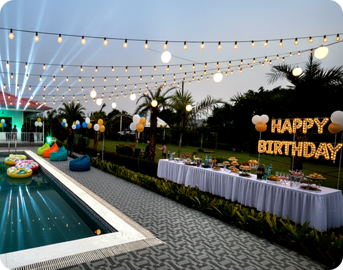 From wedding celebrations to corporate events, our farm house for rent is ideal for get-togethers, milestone parties, and casual celebrations.